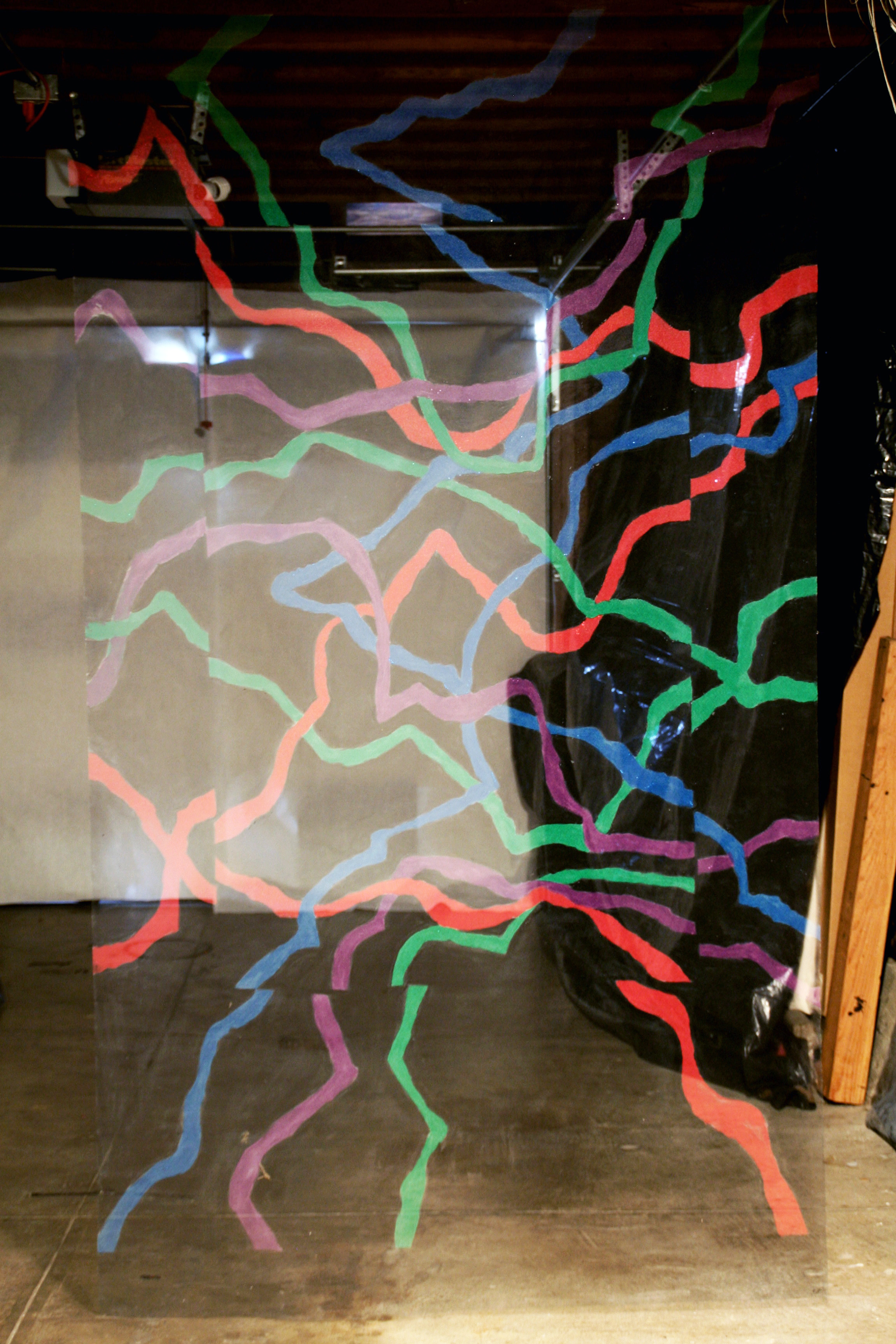 Al Wong, “Rectangle Move” ©2013, 8’H x 5’W, Acrylic on fiberglass netting.