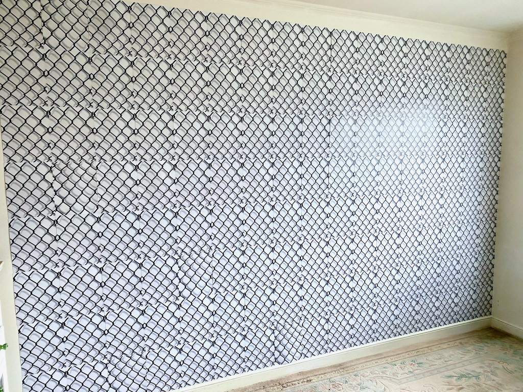 “Don’t Fence Me In” (Overview) 2025, 157 photographs mounted to wall. 7.5 feet high x 11 feet wide.