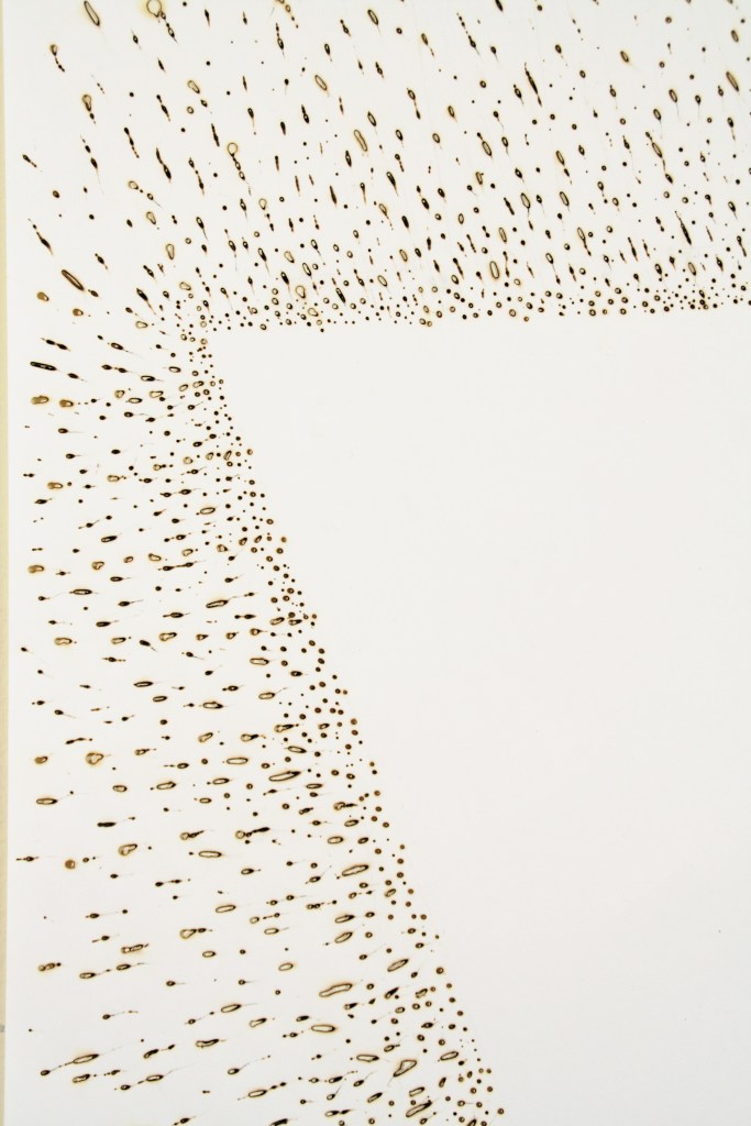 Al Wong, “Square Burn,” ©2017, 24″H x 18″W, Paper with burn marks. (View 2 – Detail)