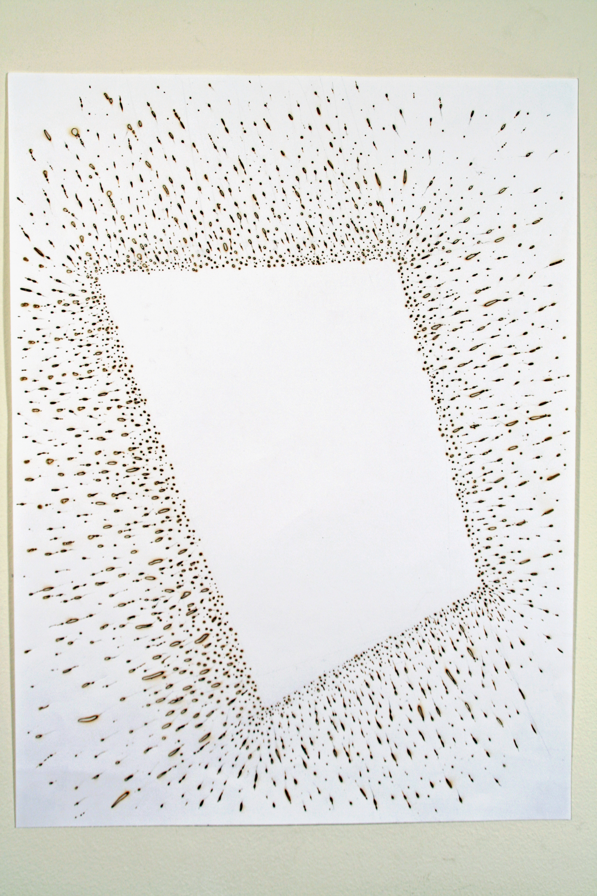 Al Wong, “Square Burn,” ©2017, 24″H x 18″W, Paper with burn marks. (View 1 – Overview)